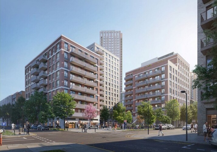 The brownfield site – situated at the former Peek Freans biscuit factory – will be transformed to include retail, leisure, and office spaces alongside 1,624 new homes – 338 of which will be social rent homes.