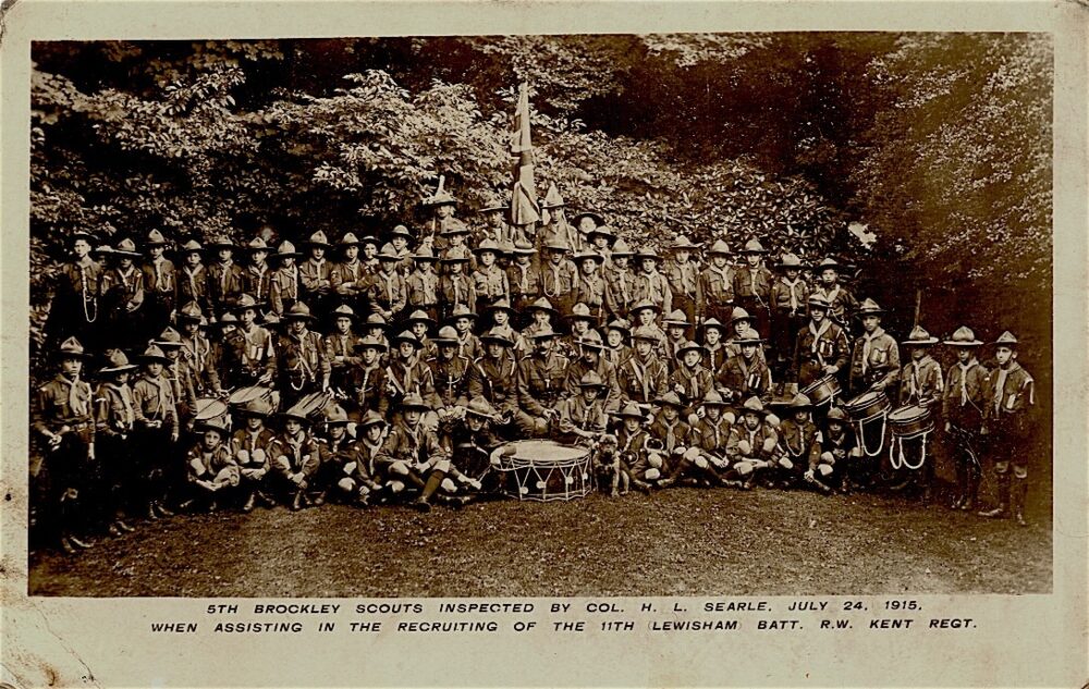 Top image is a photo of scouts camping on the site in 1914 when they patrolled the railway bridge located here as part of the war effort. The photo is from Lewisham Archives and was coloured by Paul Harrison.
