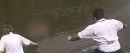 When they arrived on scene, the man was floating in the middle of the pond and failed to respond to their calls.