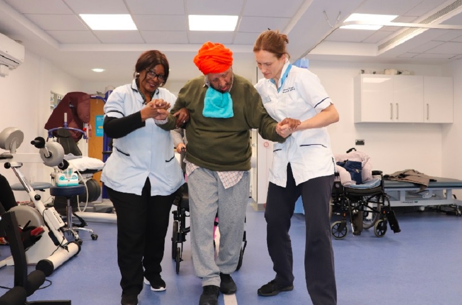 Pictured top: Hospice patient Raj with Physio Amy and Raj’s carer, Molly
