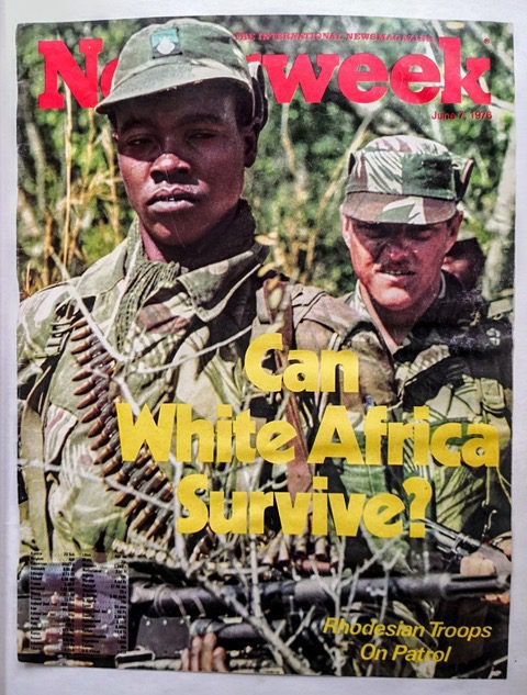 The following year, in 1976 he freelanced for Photographers International and returned to Rhodesia, now Zimbabwe, where an ugly war had started.While out on patrol with the security forces, Mr Jordan took a picture of an armed black Rhodesian soldier advancing in front of his white fellow soldier, the image suggesting this might represent the country’s future. In June 1976 Newsweek The American weekly news Magazine used the picture as their cover – Peter’s first. A career-booster, it also earned Peter deportation from the troubled country.