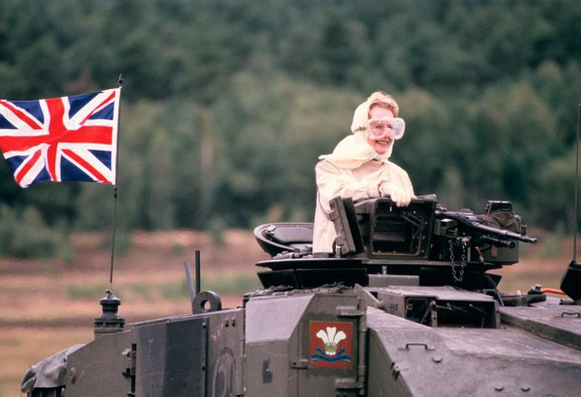 Between 1984 and 1987, Peter travelled extensively with Margaret Thatcher. His photograph of Thatcher in the Chieftain tank, headscarf on and goggles down is still widely used today.