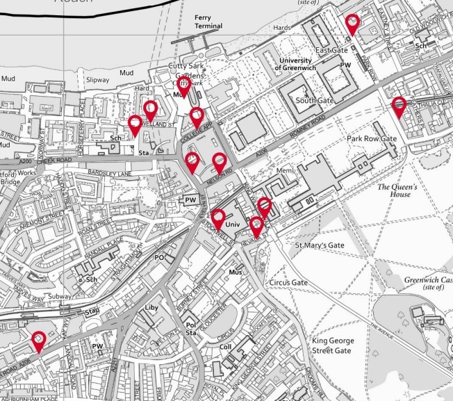 The list includes 20 roads in Woolwich town centre and 13 in Greenwich town centre. Included in the list are Beresford Square, Powis Street and General Gordon Square in Woolwich, as well as Greenwich High Road and Cutty Sark Gardens in Greenwich.