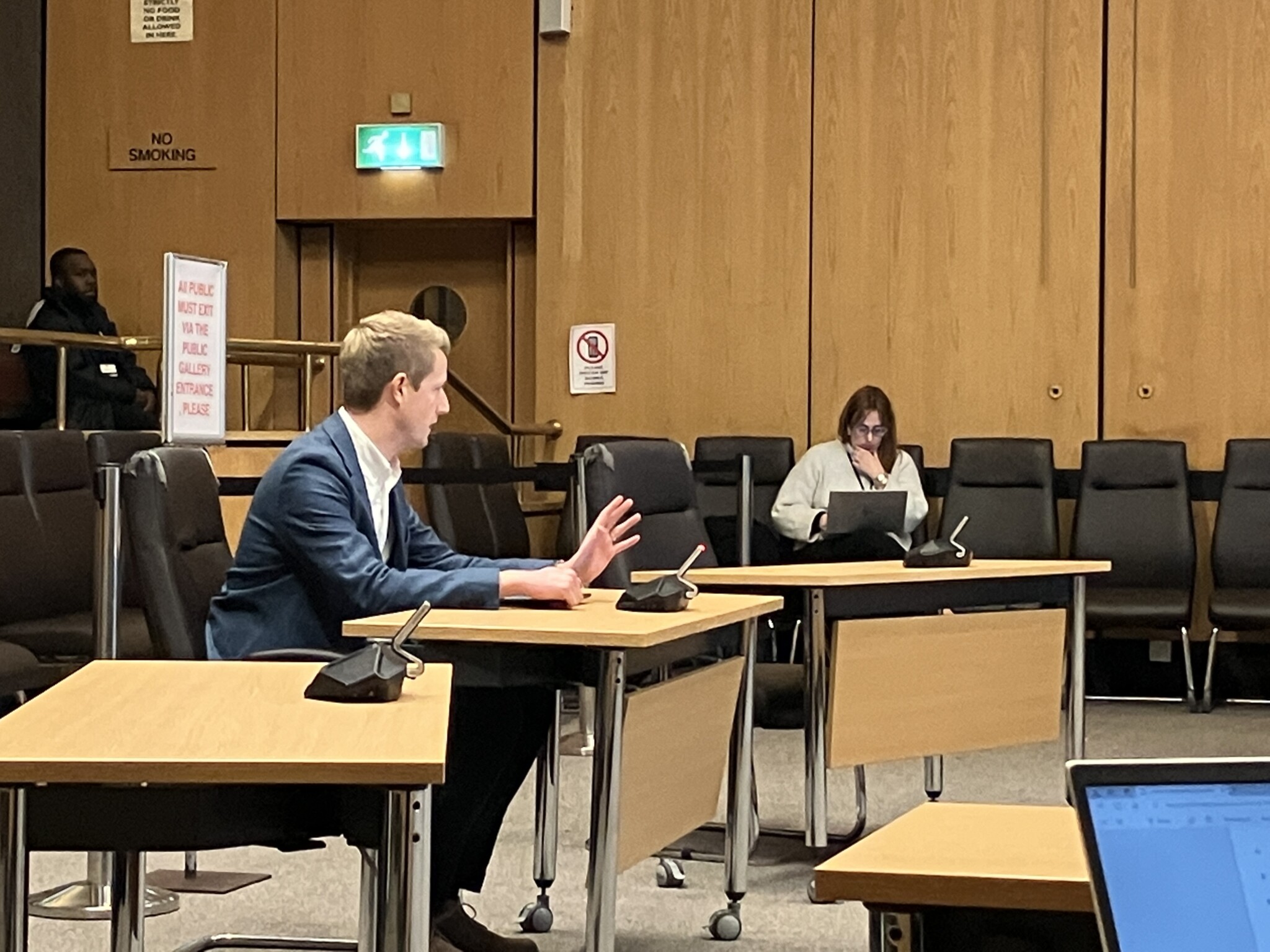 Picture: Mark Batchelor, speaking on behalf of Ringers Road Properties Limited, at the Development Control Committee meeting for Bromley council (Picture: Joe Coughlan)