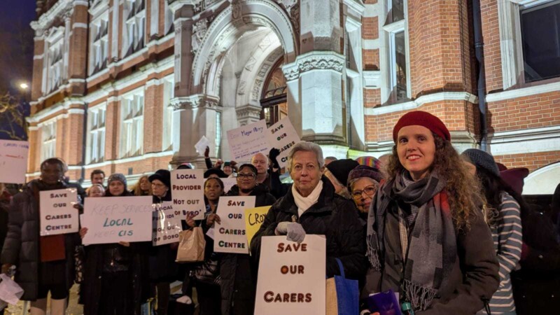 Pictured top: Carers gathered outside Croydon Town Hall before the Full council meeting last Wednesday (Picture: Harrison Galliven)