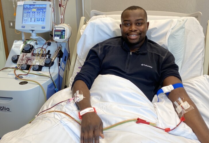 Pictured top: Leader of Greenwich council, Cllr Anthony Okereke receives a blood transfusion at Guy’s Hospital (Picture: Greenwich council)