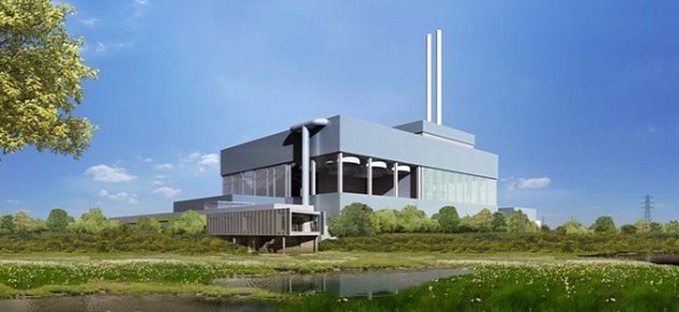 The incinerator, also called the Energy Recovery Facility (ERF), burns rubbish which would otherwise go to landfill.