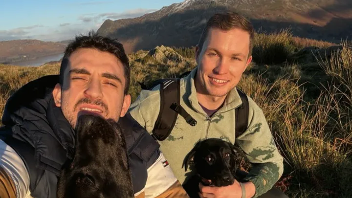 Pictured top: Adam Leake and Georgian Florea with their Labradors ,Emma and Oliver (Picture: Adam Leake)