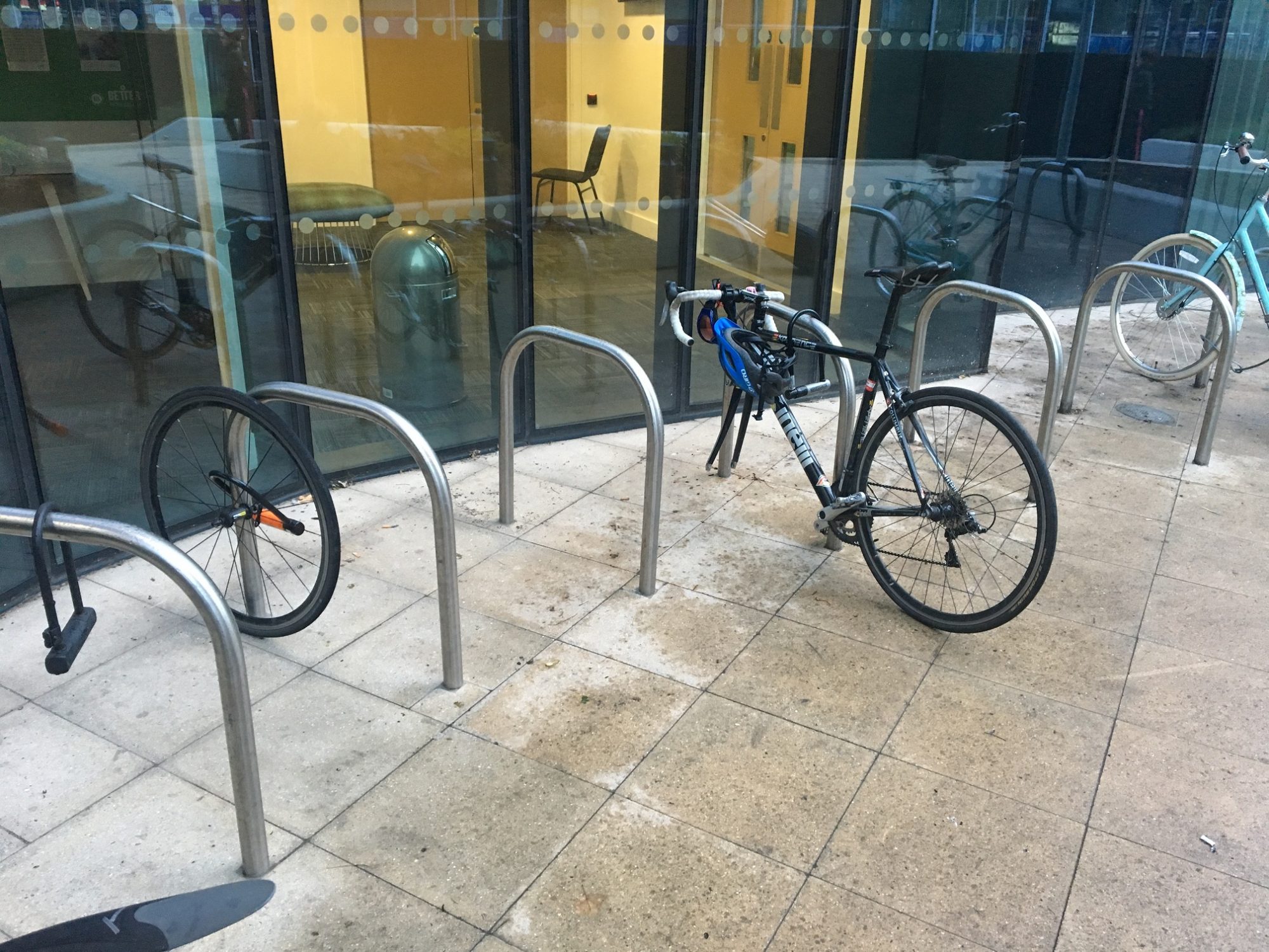 Crafty bike thieves nick front wheel from one bike and everything but front wheel from other