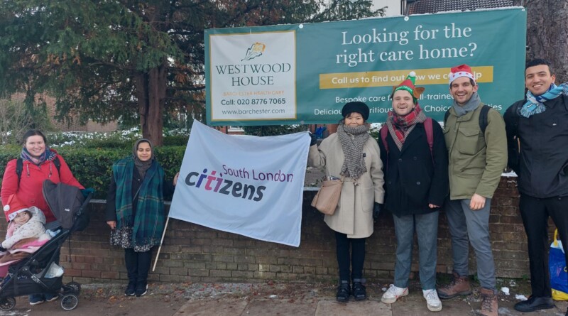Protesters at Barchester Healthcare care homes across South London are demanding workers be paid the real Living Wage.