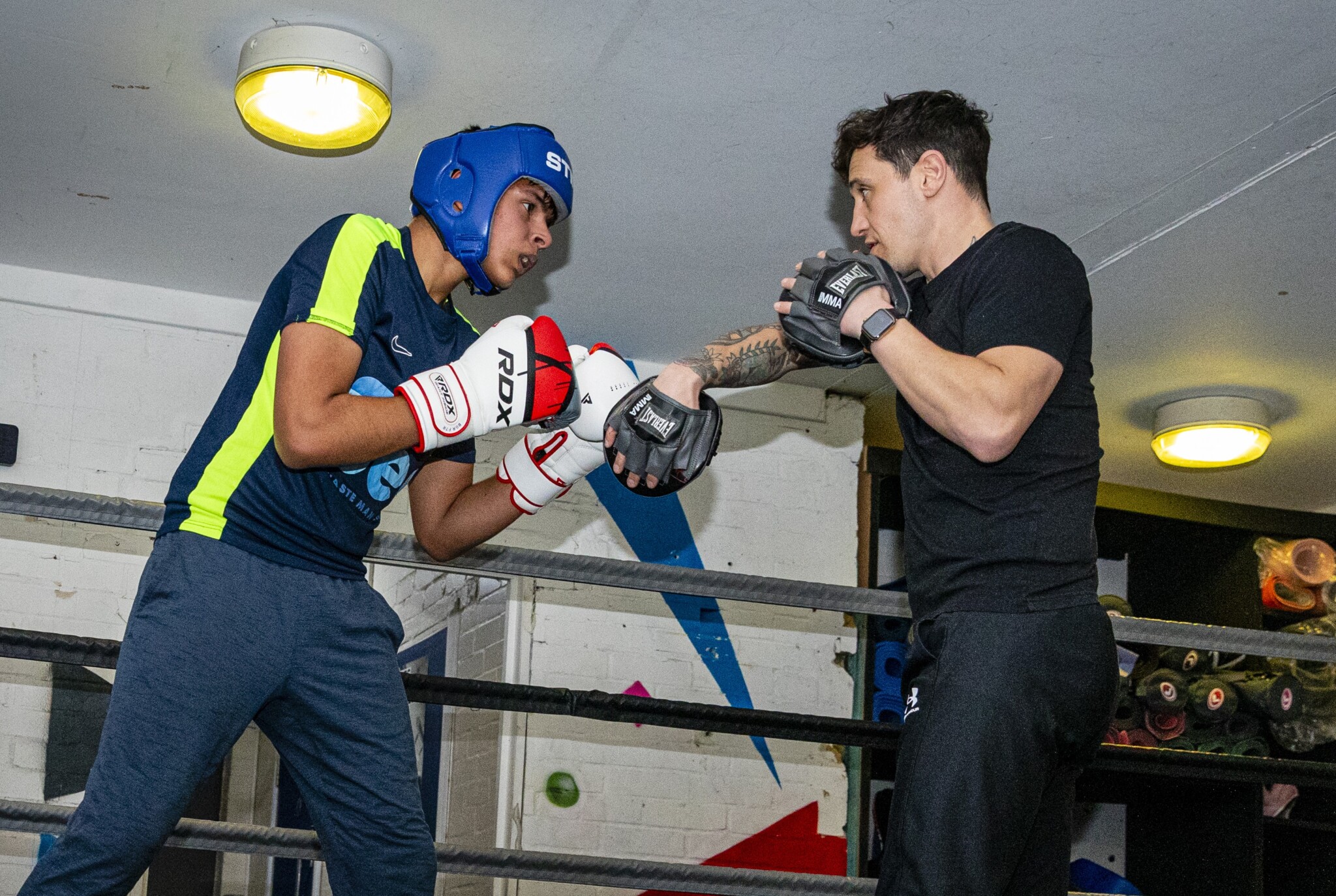 Pictured top: Marc Rice in his coaching role, sparring with Be Inspired member Saqib Awan (Picture: Good Karma Media/Pawel Gawronski)
