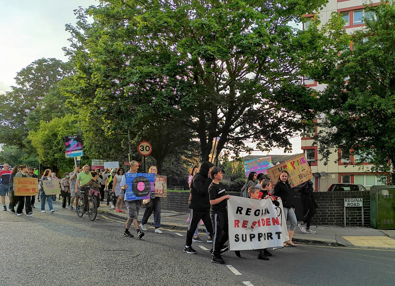 Protestors made their way from Regina Road down High Street to Norwood Junction Station and back with children leading at the front with a Regina Road Residents Support Group banner.