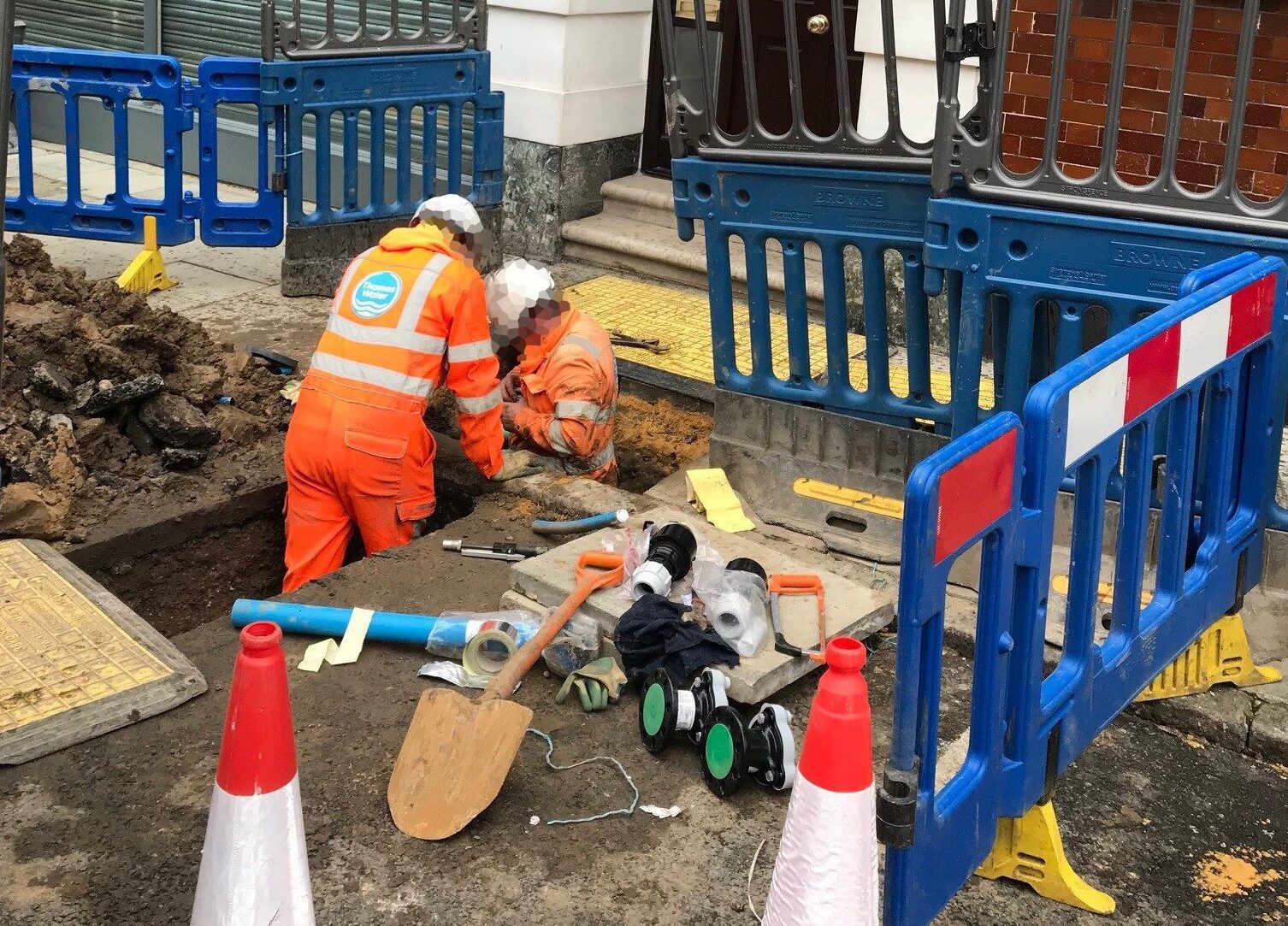 Pictured top: Thames Water workers (Picture: Kensington and Chelsea council)