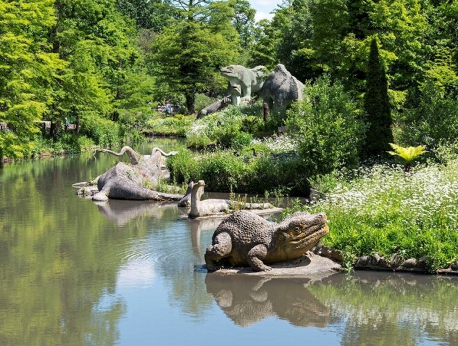 The sculptures were the creation of Benjamin Waterhouse Hawkins, a natural history artists of the Victorian era.