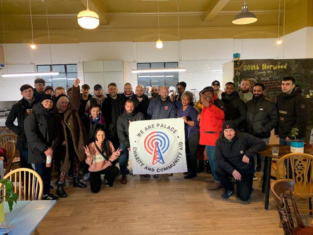 We Are Palace is a collective of fan groups that come together under one banner to provide donations, charity and community work to support local people throughout the Palace south London community.