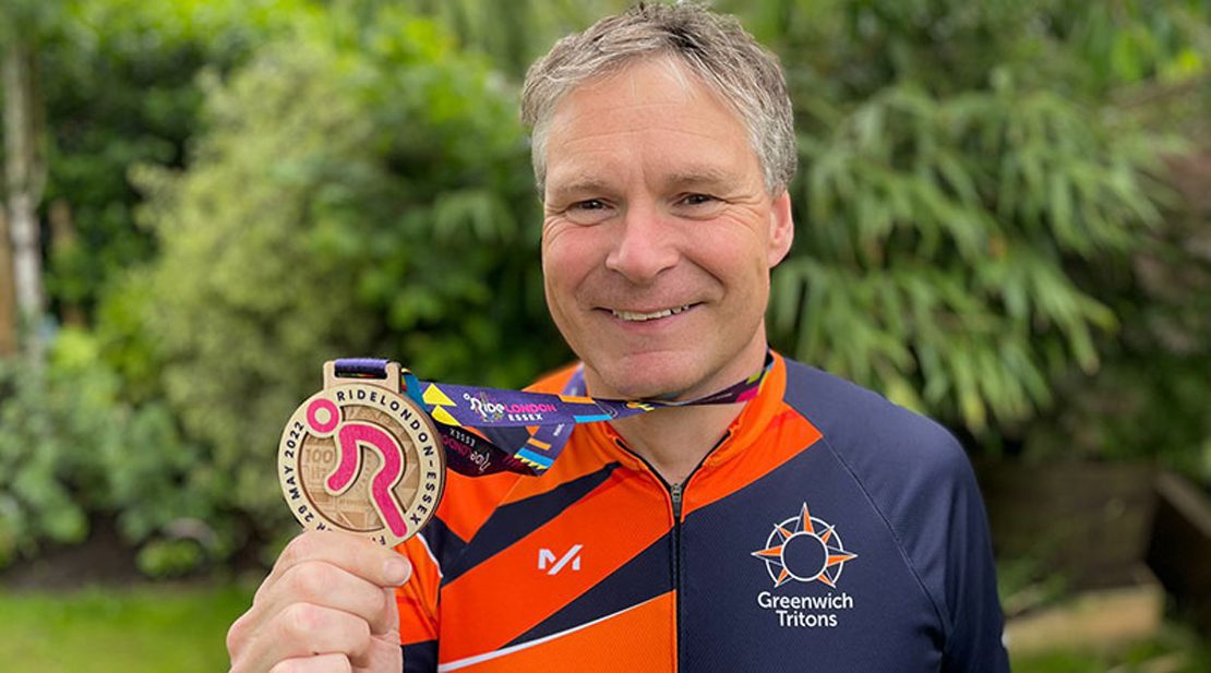 A London cyclist, who joined more than 20,000 others on Sunday’s 100-mile RideLondon event, refused to quit when his bike broke.
