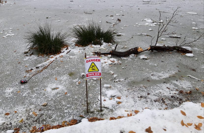 “I have raised this with the council and I have been advised that signs will be installed this week warning of the danger. Meanwhile, if you see someone playing on the ice please ask them to come safely to the bank and if you need to call 999, please do.”