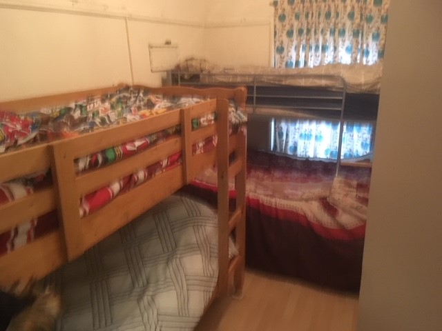 One flat was 35 square metres in area – two metres below the minimum for a one person flat. But it had three bedrooms, one with no windows and each bedroom had at least two bunk beds in it. The larger bedroom had two sets of bunk beds – so at least eight people were living in a flat too small for one person.