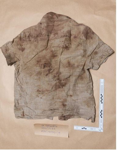 A bloodstained shirt and shoe print which provided DNA evidence (Picture: The Met)