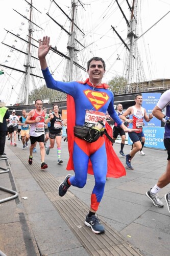 Pictured top: Streatham’s Tristan Walker-Buckton running the 2021 London Marathon dressed as Superman (Picture: Tristan Walker-Buckton)