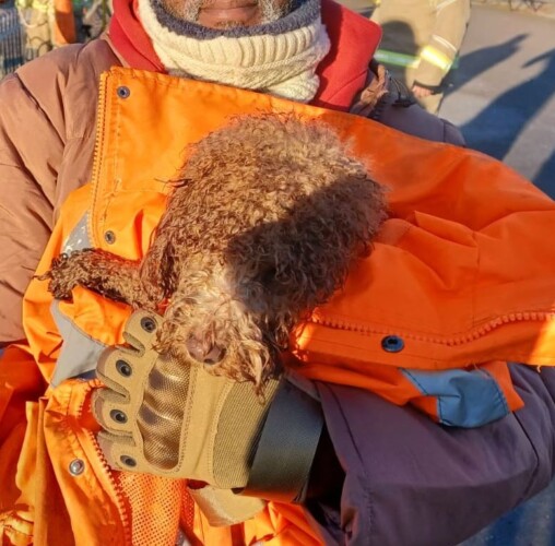 Firefighters arrived on the scene and, after breaking through the ice, they were able to paddle out in one of the brigade’s inflatable boats to rescue stranded Ponzo and bring her to safety.