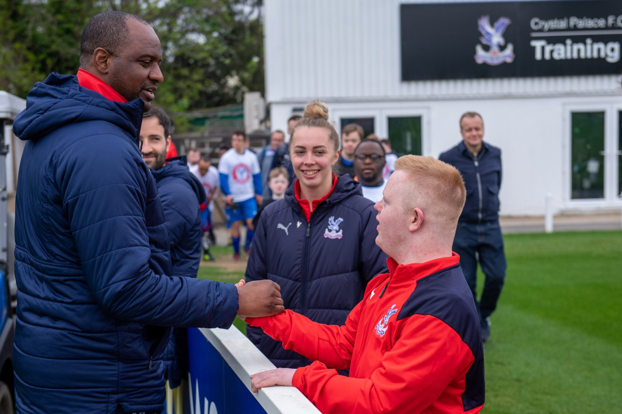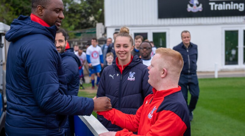 Crystal Palace hosted the Down’s Syndrome Eagles at training ahead of Saturday’s game against Watford, with the players meeting the first-team, boss Patrick Vieira and his staff.
