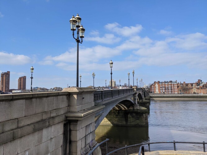 The set-up was installed on the north side of Battersea Bridge by TfL after a man was killed on the bridge earlier this year in a collision with a vehicle.
