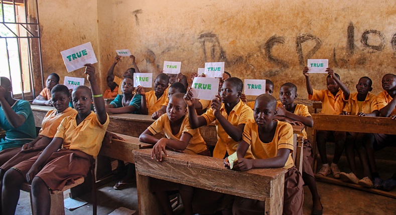 The photo was taken at a children’s club educating young people on sexual health issues in the remote village of Nayorku.