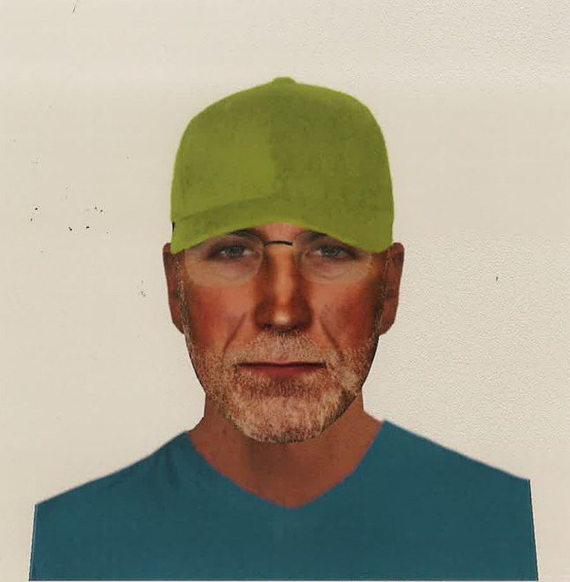 The suspect is described as a white man, aged around 50, about 6ft tall, of slim build with a short, grey beard. He was wearing black, thin-rimmed glasses, a blue top, blue shorts and a luminous yellow cap.