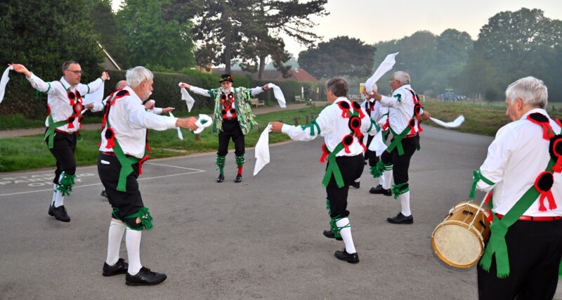 It was a perfect start to Summer for this group of traditionalists as the mist on the grass disappeared in warm sunlight and the noise of bells, sticks and clashing of swords surprised early morning joggers and dog walkers.