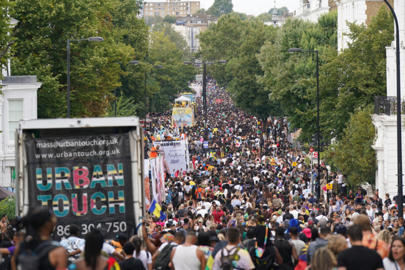 Pictured top: Crowds during the Children’s Day Parade at Notting Hill Carnival on Sunday (Picture: Yui Mok/PA Wire)