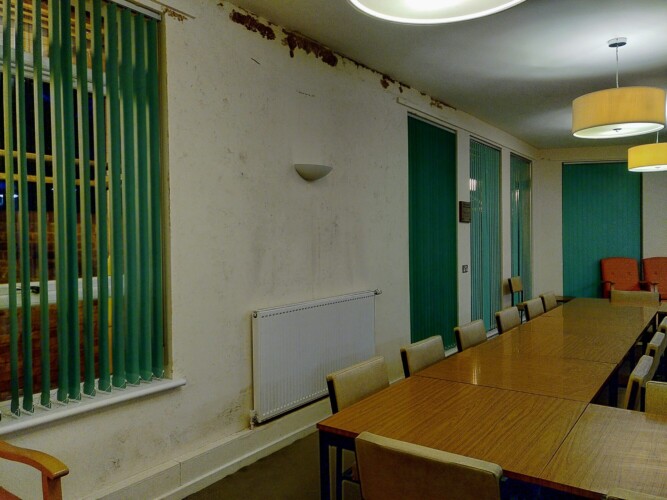 The room is usually used for bingo nights and eating together at the flats in Kuala Gardens. But the walls are peeling and covered in mould following the roof leak.
