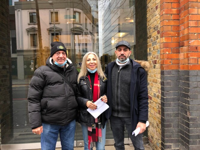 Pictured top: Former Elephant and Castle shopping centre traders outside Southwark Council HQ. Left to right: Mohammad Dar, Diana Sach, Emad Megahed. Credit: Robert Firth.