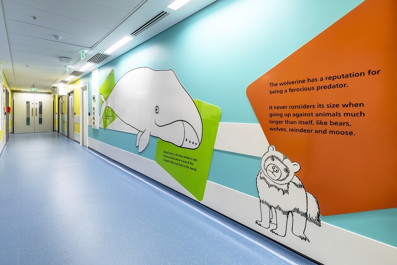 The environment we create through digital installations, murals, and graphics in our wards and clinics plays an essential role in supporting our families during their visits or stays with us.