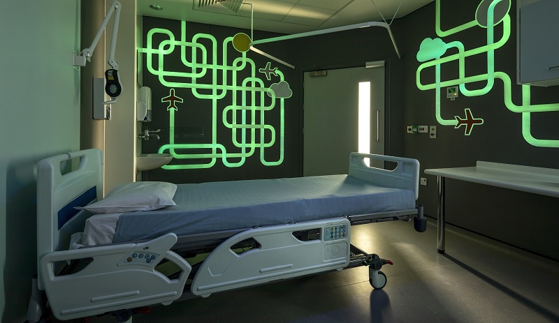 An LED light display that follows sunrise and sunset by imitating the course of the day has been designed by cardiology consultants, to help with children and young people while they are staying in hospital.