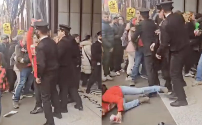 The alleged incident took place outside Harrods on Sunday, the second day of strike action by more than 100 retail, restaurant, kitchen and cleaning staff at the luxury department store.