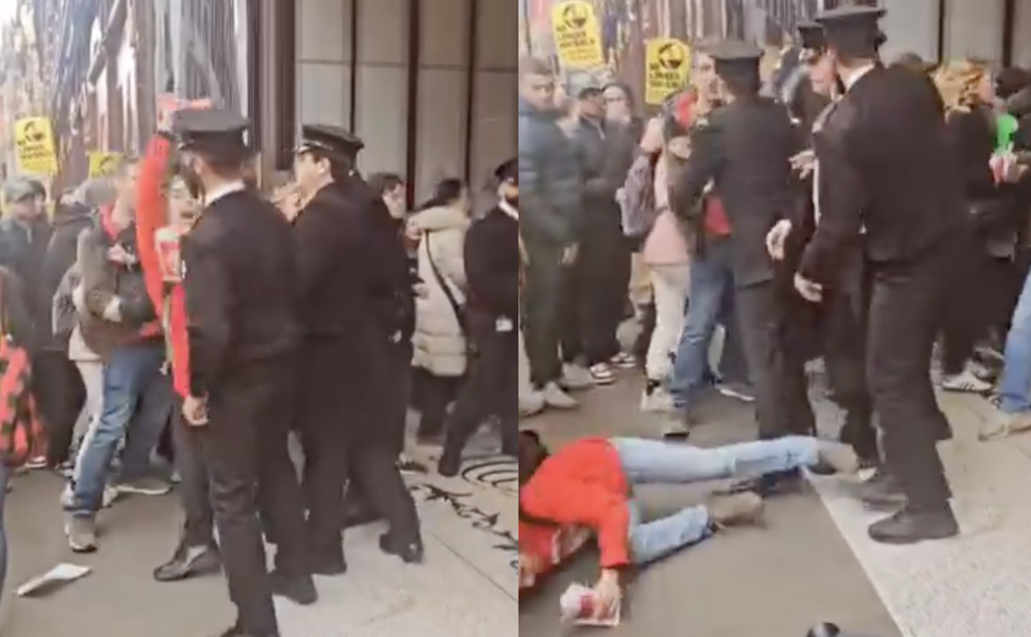 Pictured top: Stills from a video showing Molly de Dios Fisher at the picket line outside Harrods (Picture: UVW)
