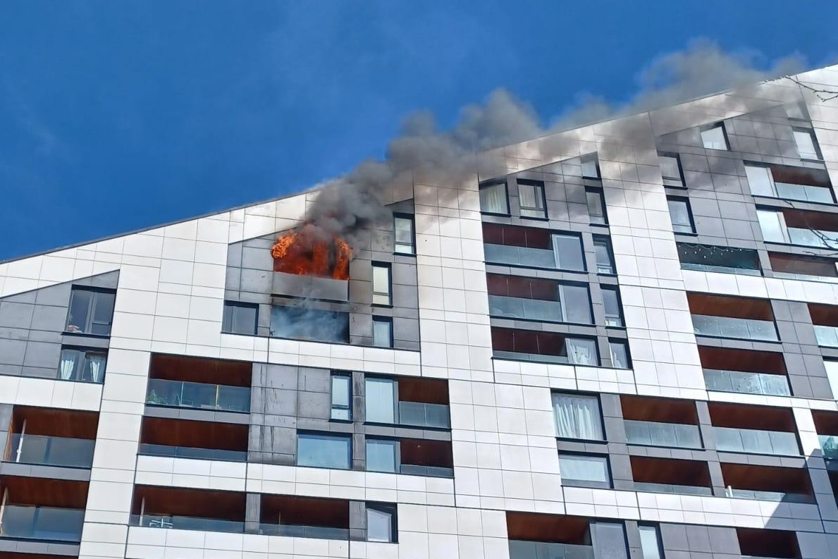 Pictures shared on social media show thick plumes of smoke and some flames billowing from two flats of a new-build complex, near Bromley town centre.
