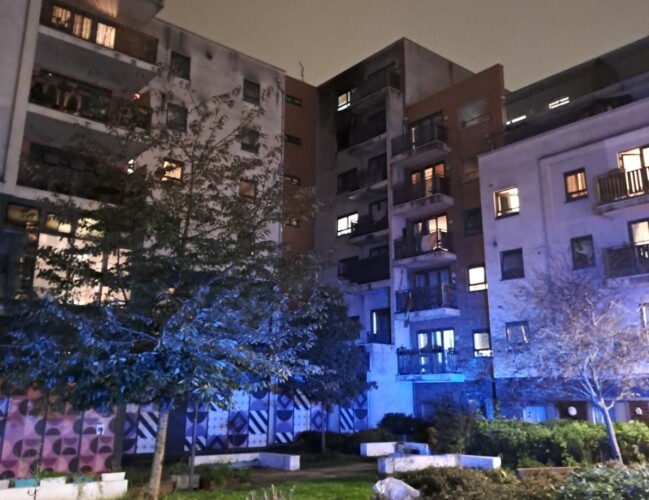 Part of a three-roomed flat on the fifth floor in the seven-storey block of flats was destroyed by fire.