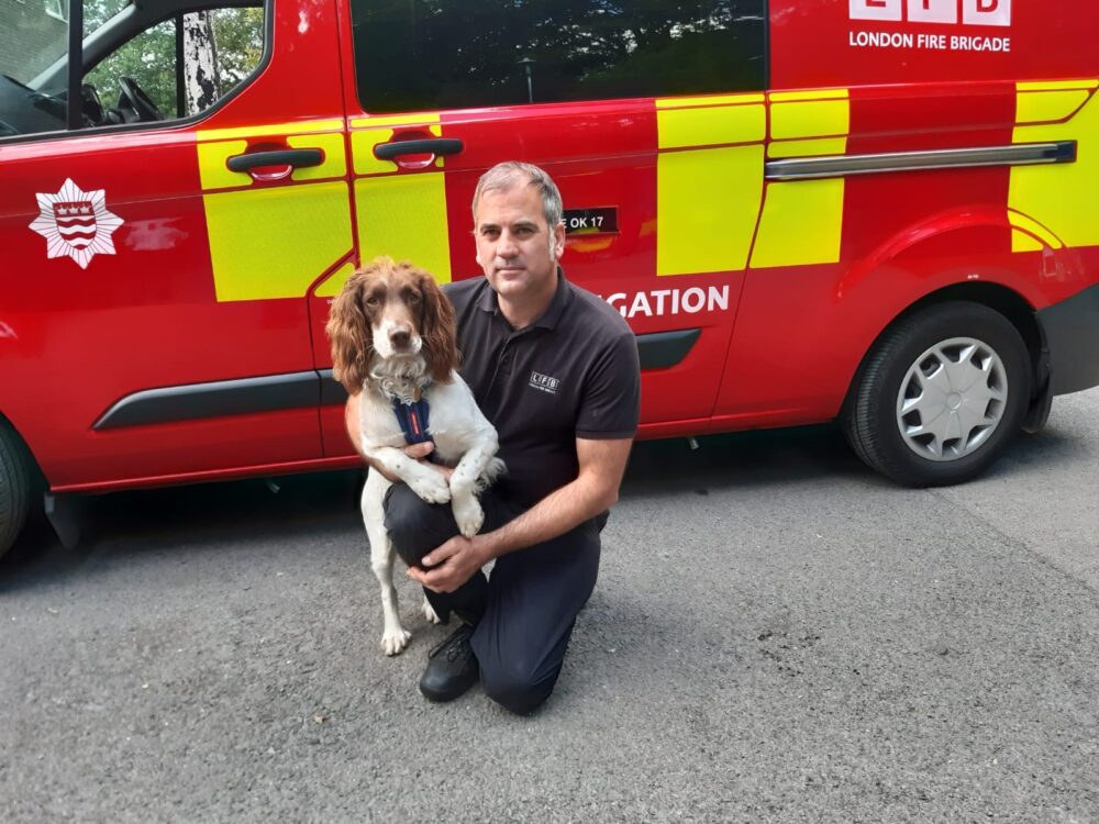 London Fire Brigade’s fire investigation dog Simba has been working alongside his handler, Station Officer Anton Keach, for three years.