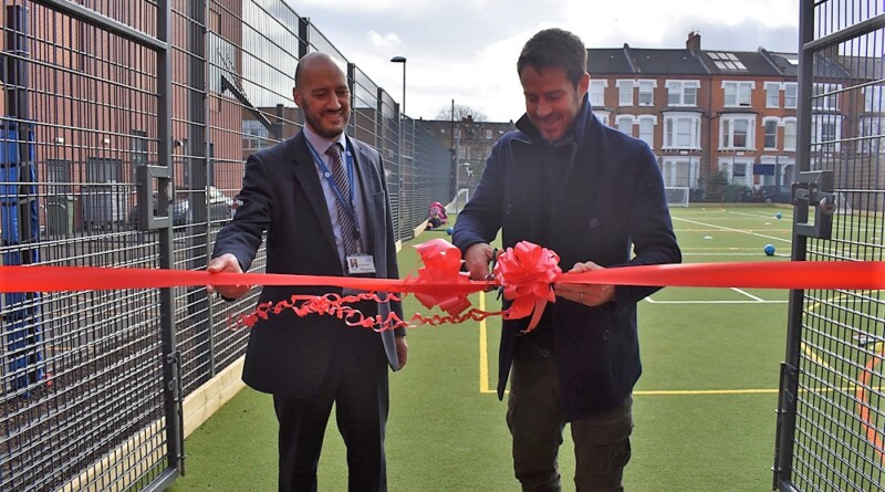 Former professional footballer and pundit Jamie Redknapp visited Trinity Academy to open a new multi-use games area.