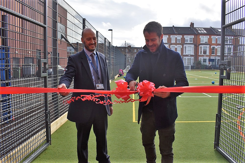 Former professional footballer and pundit Jamie Redknapp visited Trinity Academy to open a new multi-use games area.
