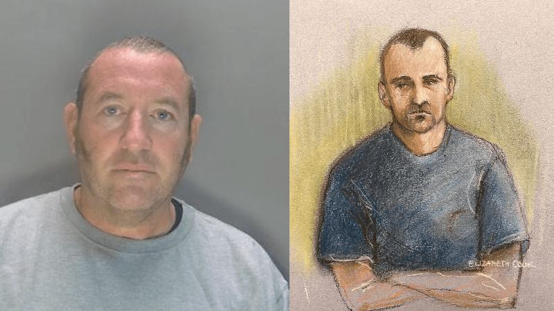 Pictured top: David Carrick custody photo and courtroom drawing (Picture: Hertfordshire Constabulary and PA)
