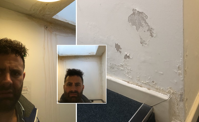 Andrew Ferris, 36, now an electrical engineer, has been putting up with a leaky roof and long stretches without hot water at Sir Walter Rayleigh Court in Greenwich since he moved in last June, 2019.