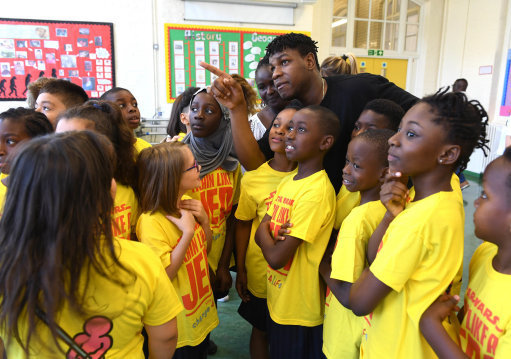 John Boyega visits his old primary school, Oliver Goldsmith Primary School in London to support the new Change4Life Train Like A Jedi programme