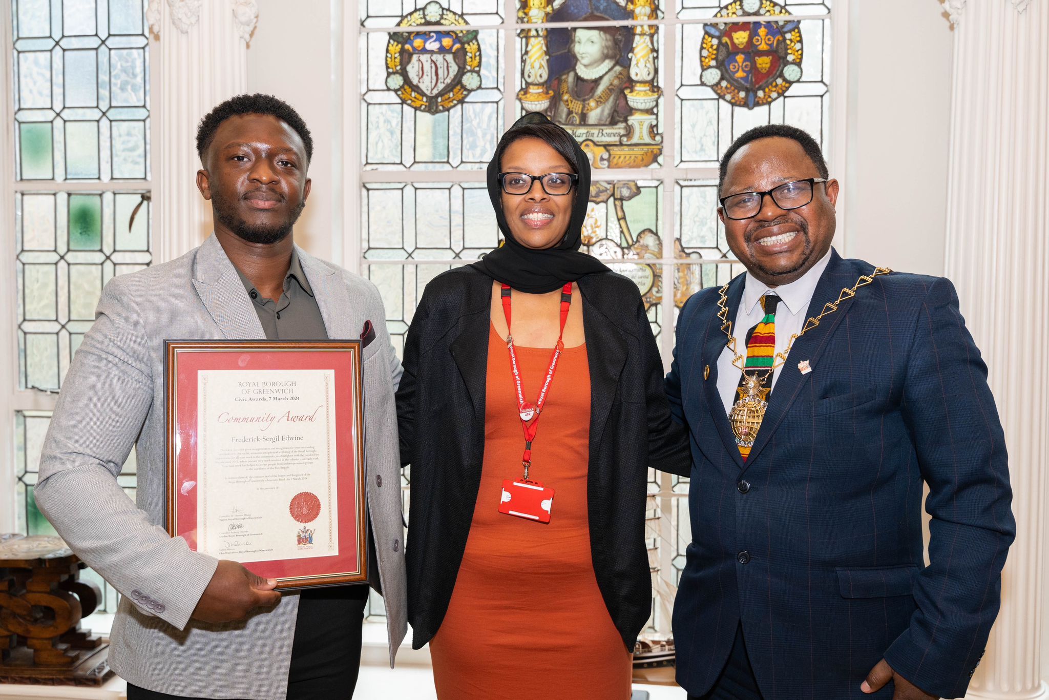 This month, he has been given an award from the Mayor of Greenwich, Cllr Dr Dominic Mbang, for his work in the community.