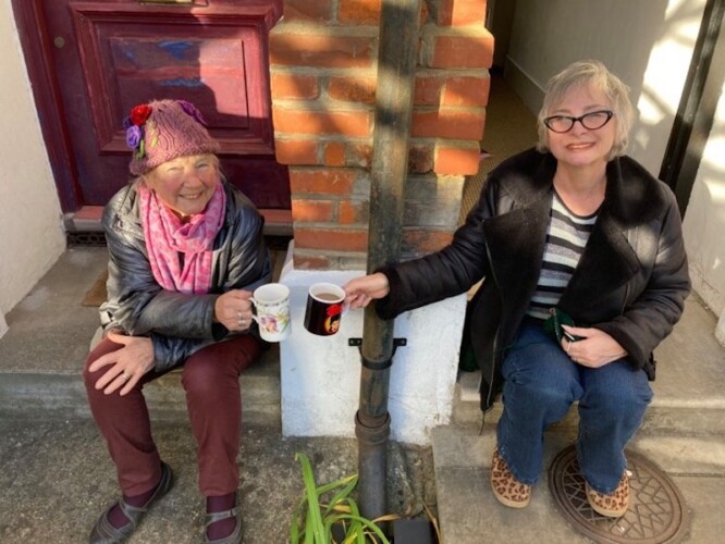 A chat at the bins turned into a doorstep coffee… then a near-daily rain-or-shine ritual which has been a lifeline for both over the last nine months—and caught the attention of their neighbours.