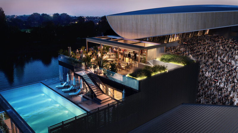 Images released earlier this year showed the rooftop swimming pool planned for the stadium’s Sky Deck, believed to be a first among European teams.