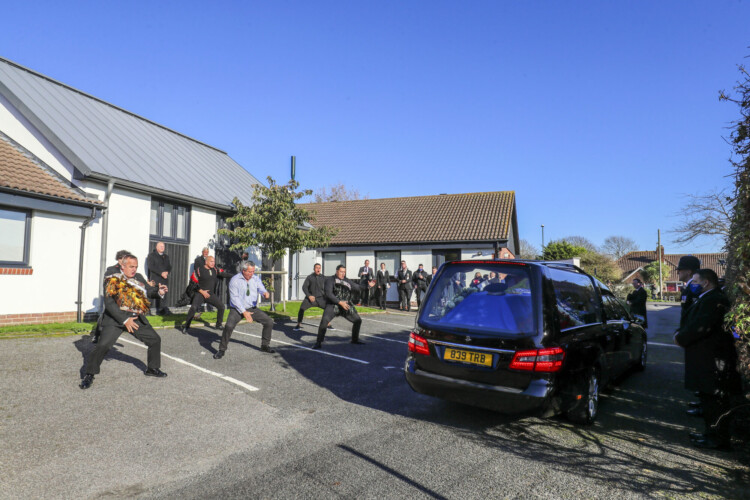 Pictured: The Haka is performed as the hearse leaves the funeral service of police officer Sergeant Matt Ratana in Shoreham-by-Sea, West Sussex. (Picture: PA)