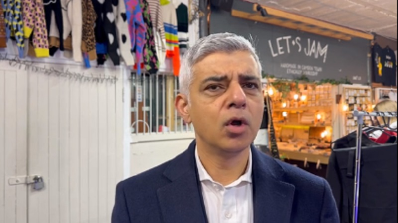 Pictured top: A still taken from video of Sadiq Khan speaking after Monday’s tragedy (Picture: Noah Vickers/LDRS)